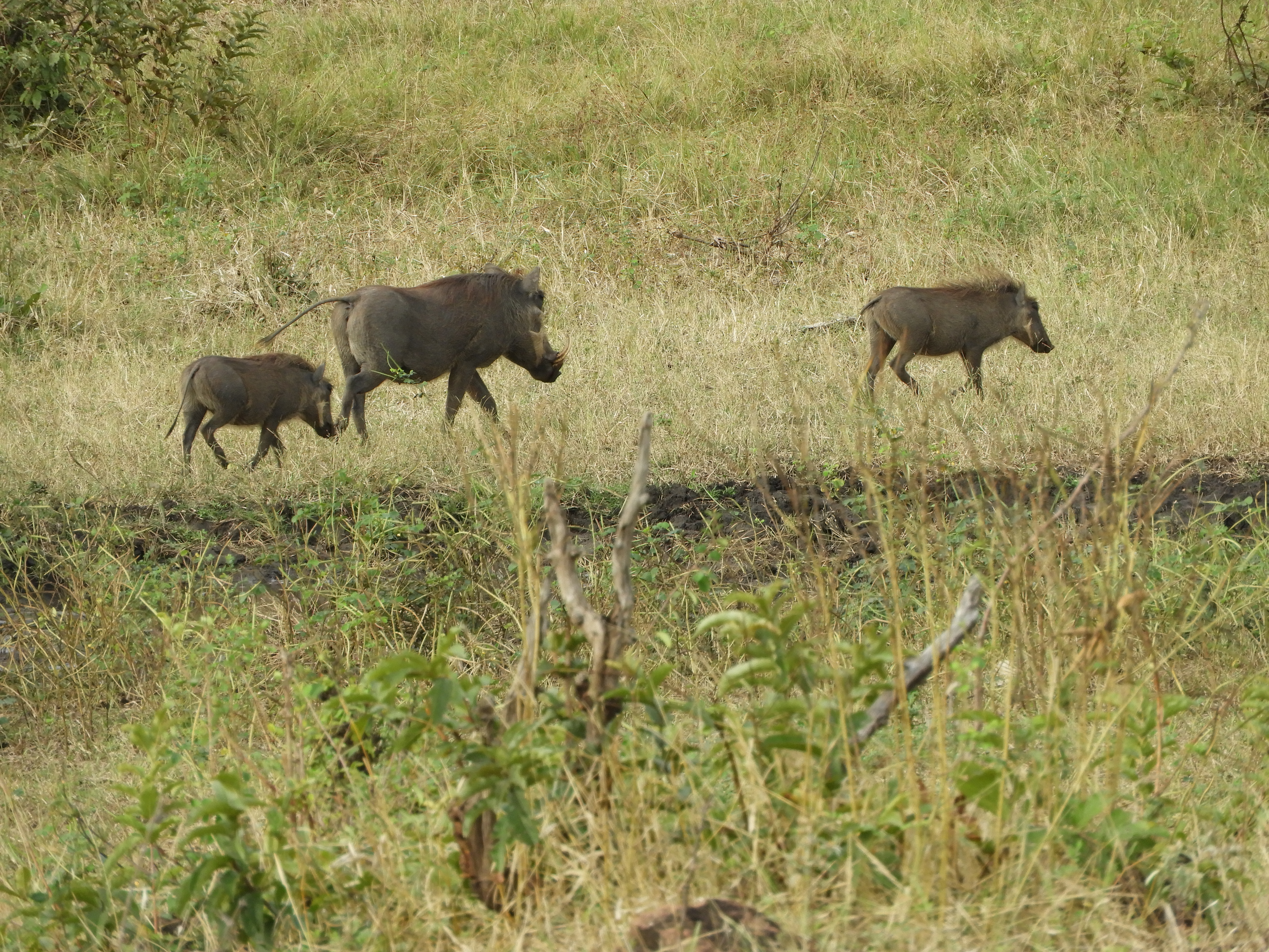 This unsuspecting family of wart hogs was heading towards the two lionesses