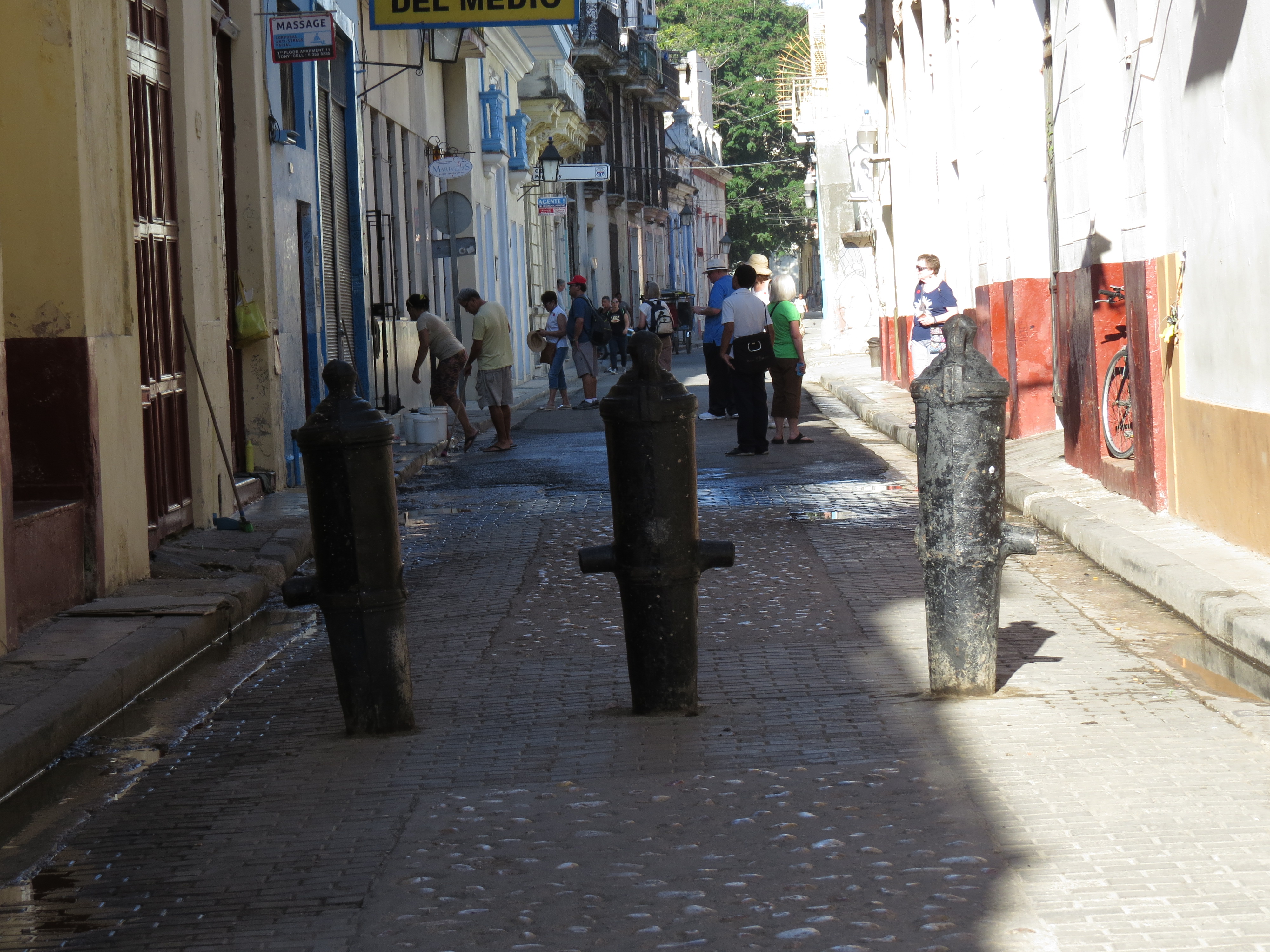 Calle Mercaderes had many cannons like these used as posts. Apparently when a cannon misfired, its muzzle was buried like this to prevent it from being used again.