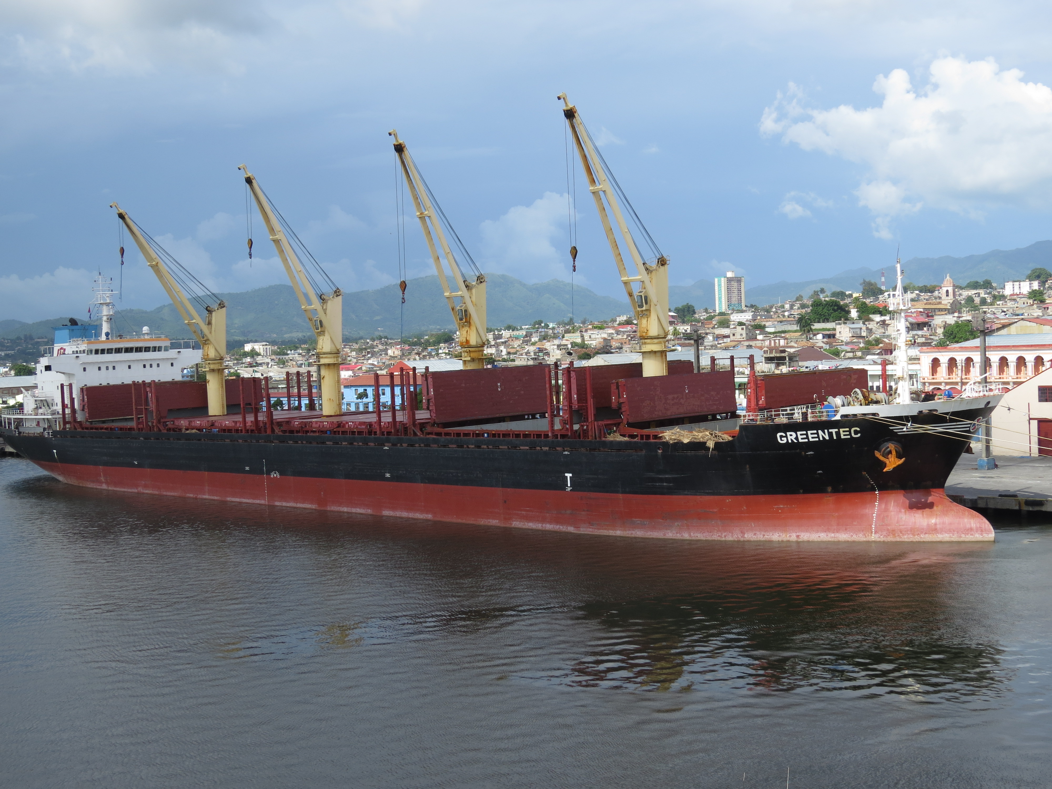 An empty container ship in the harbor.