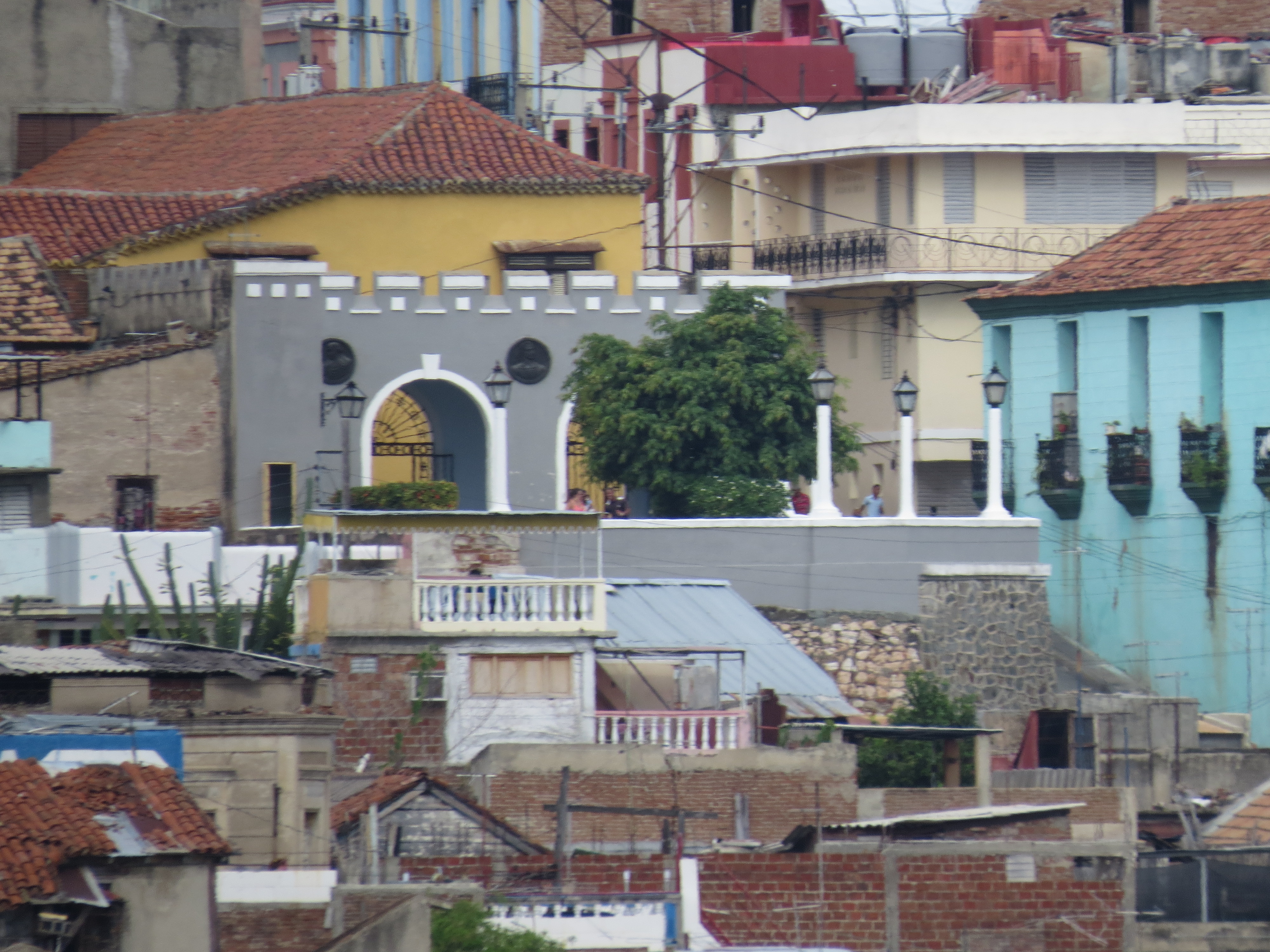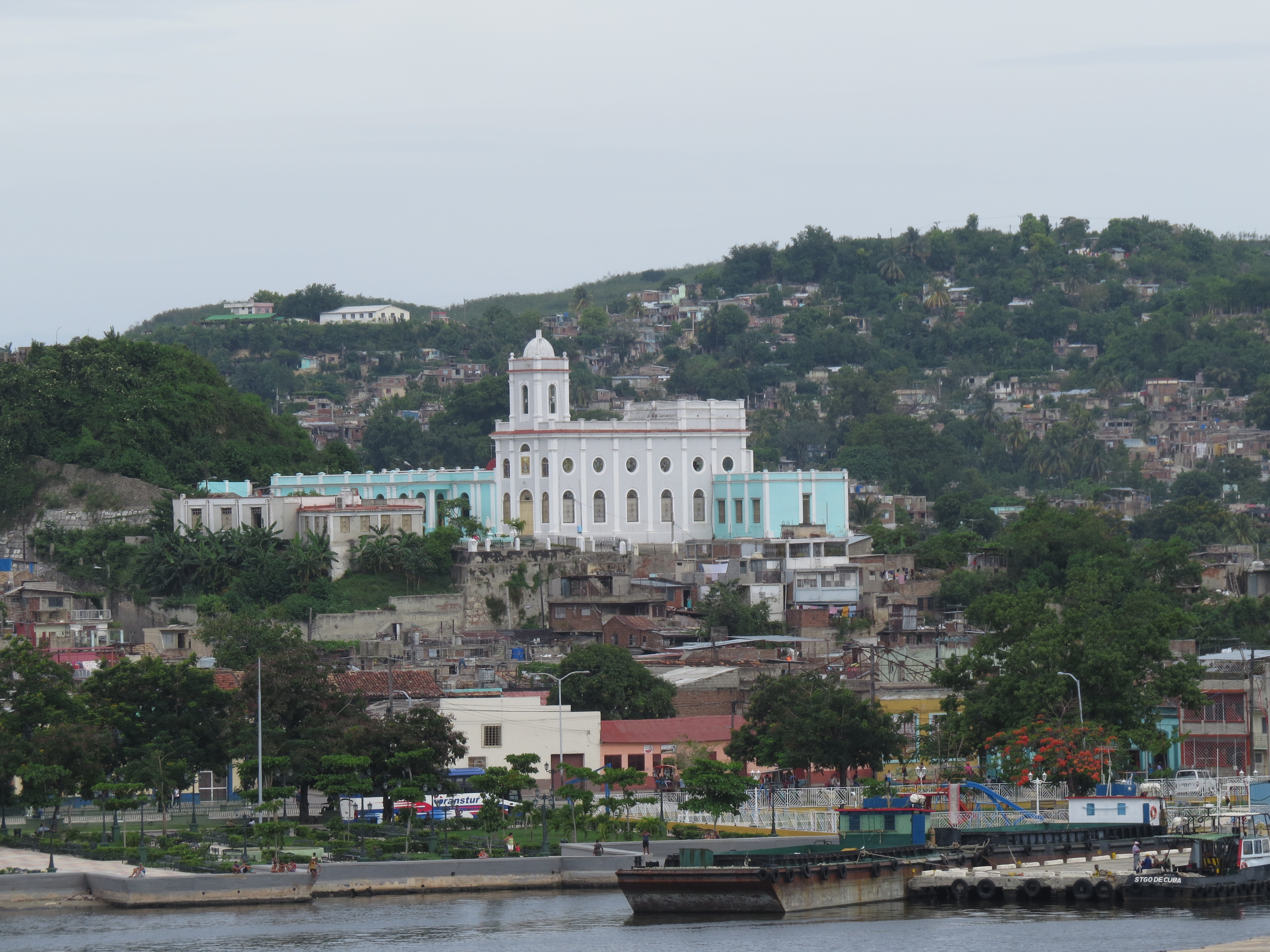 The gray balcony is where we stood to take the pictures looking down on the city. (Taken from the cruise ship.)