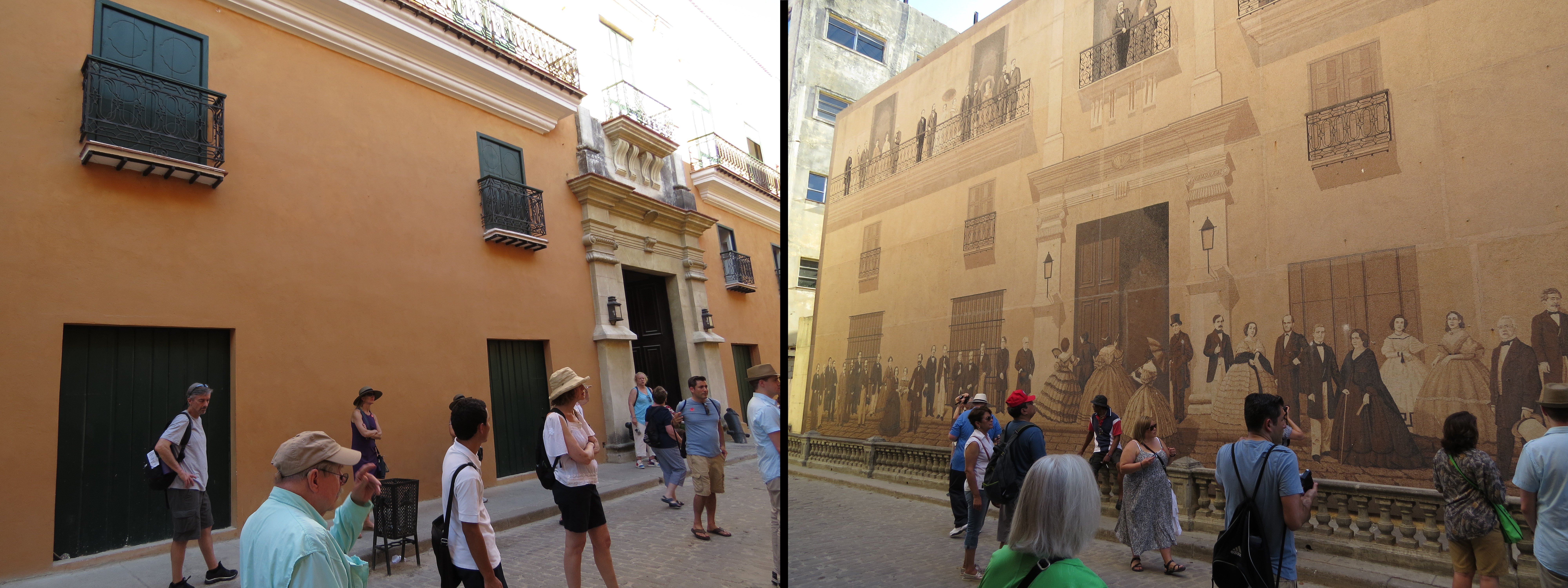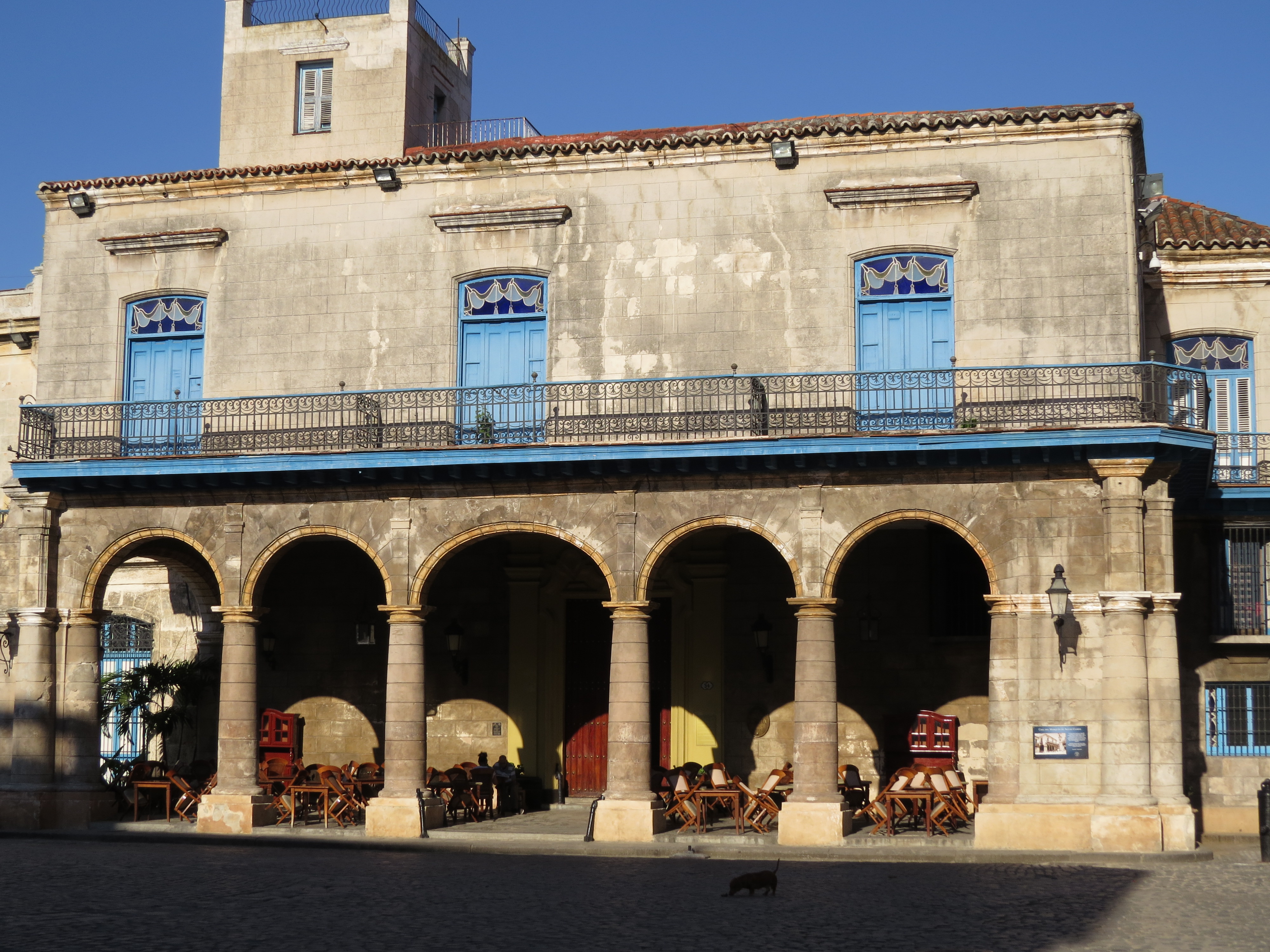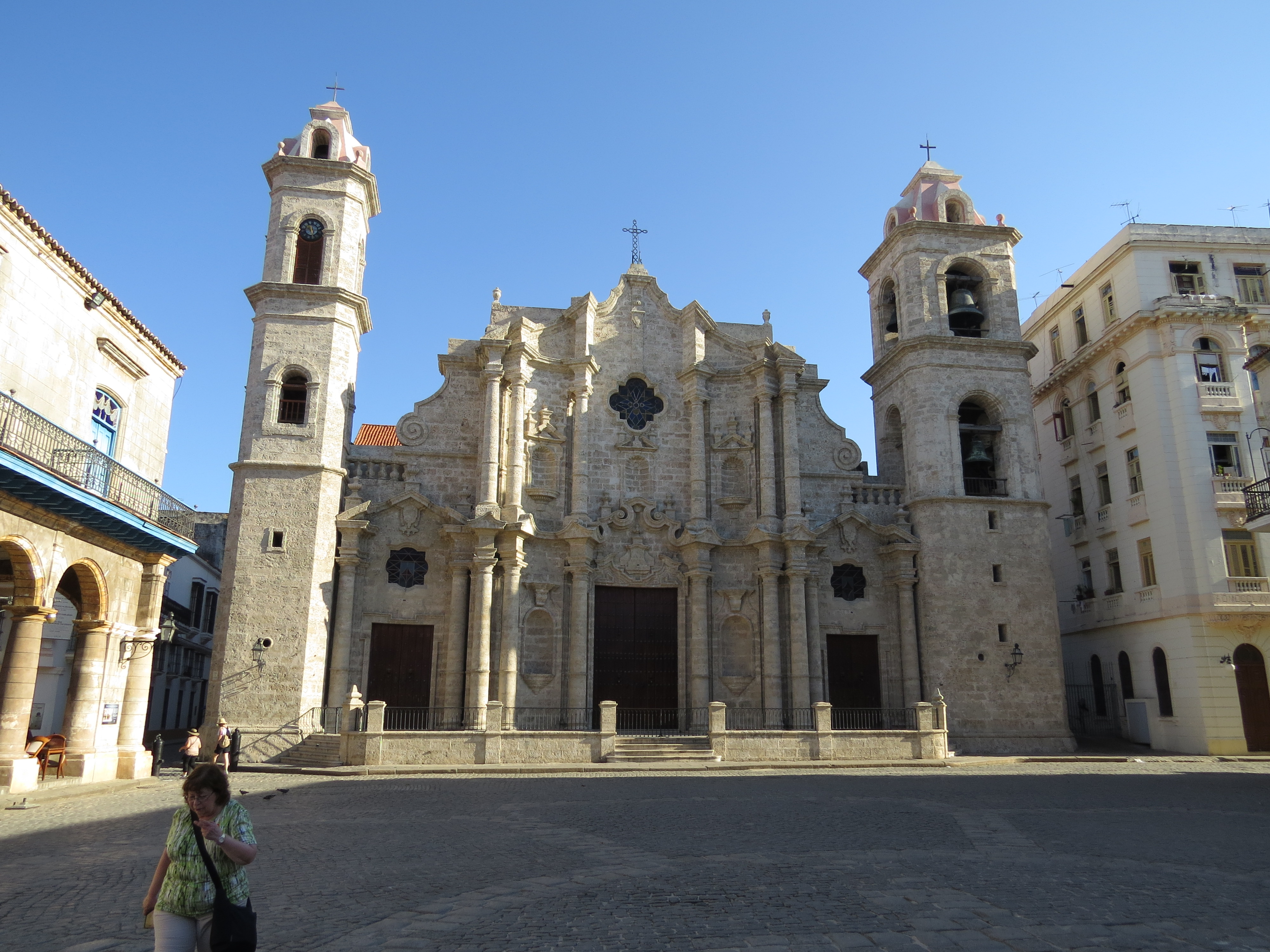 This square is called Cathedral square. The Church was started by the Jesuits, but not completed before they were banished from Cuba for being anti-government. It was completed later by another sect, and though the original design was for two equal towers, when the construction was being finished, the government would not let them take up the road that is beside the church, so they had to make the left tower narrower.