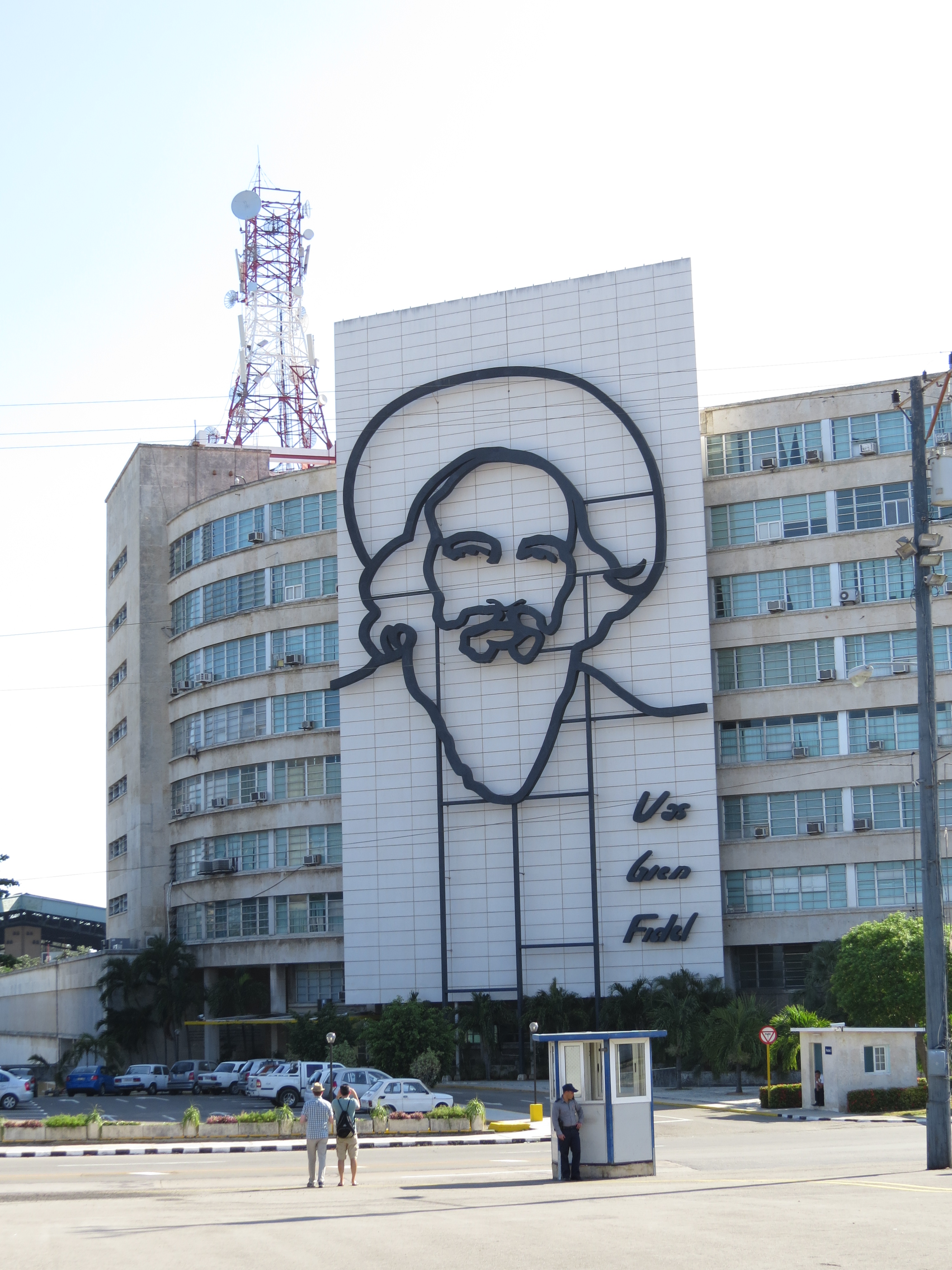 We went to revolution square, and near the square were two buildings with large images of revolutionary heroes. Here is Che Guevara's image.