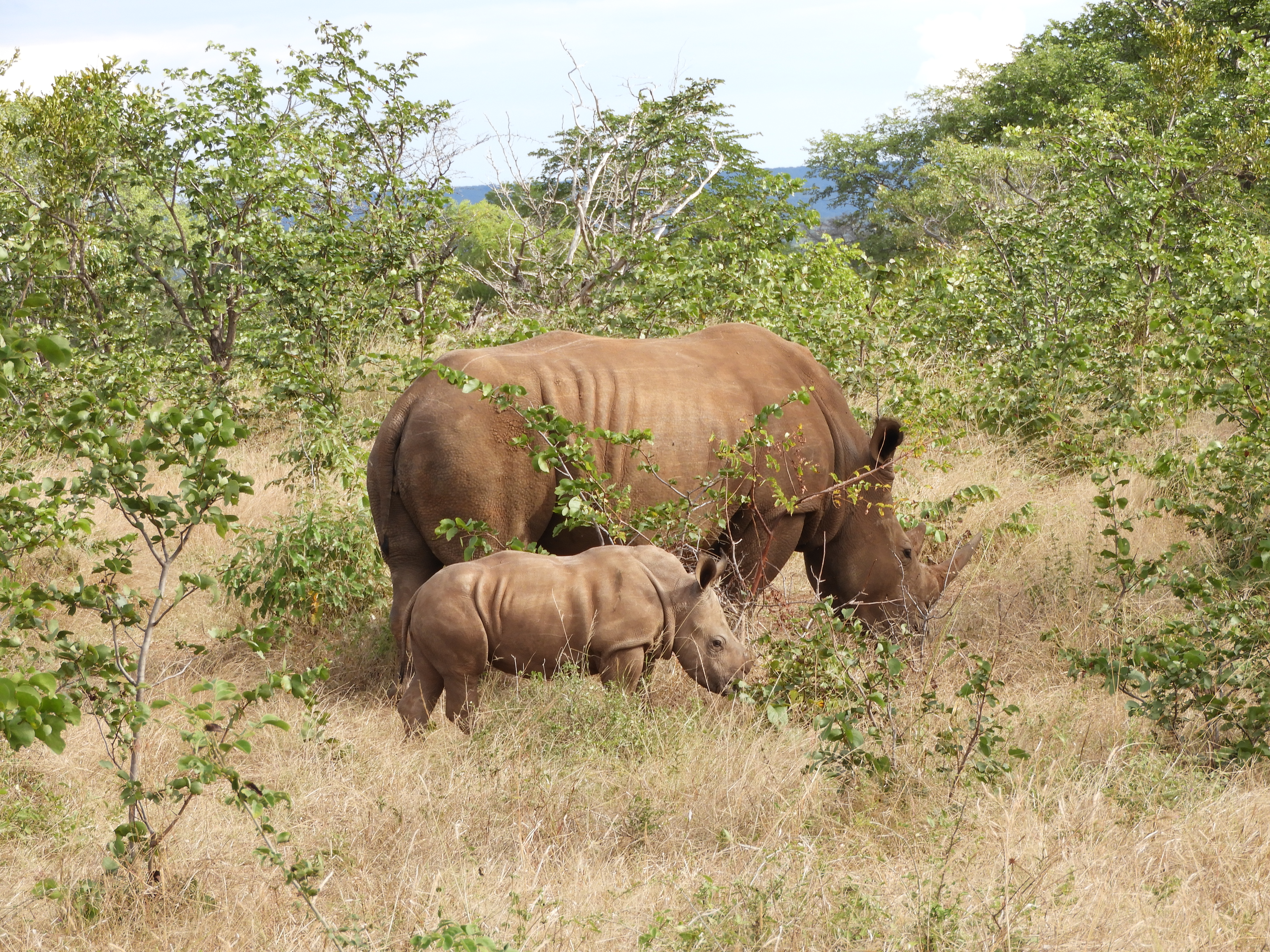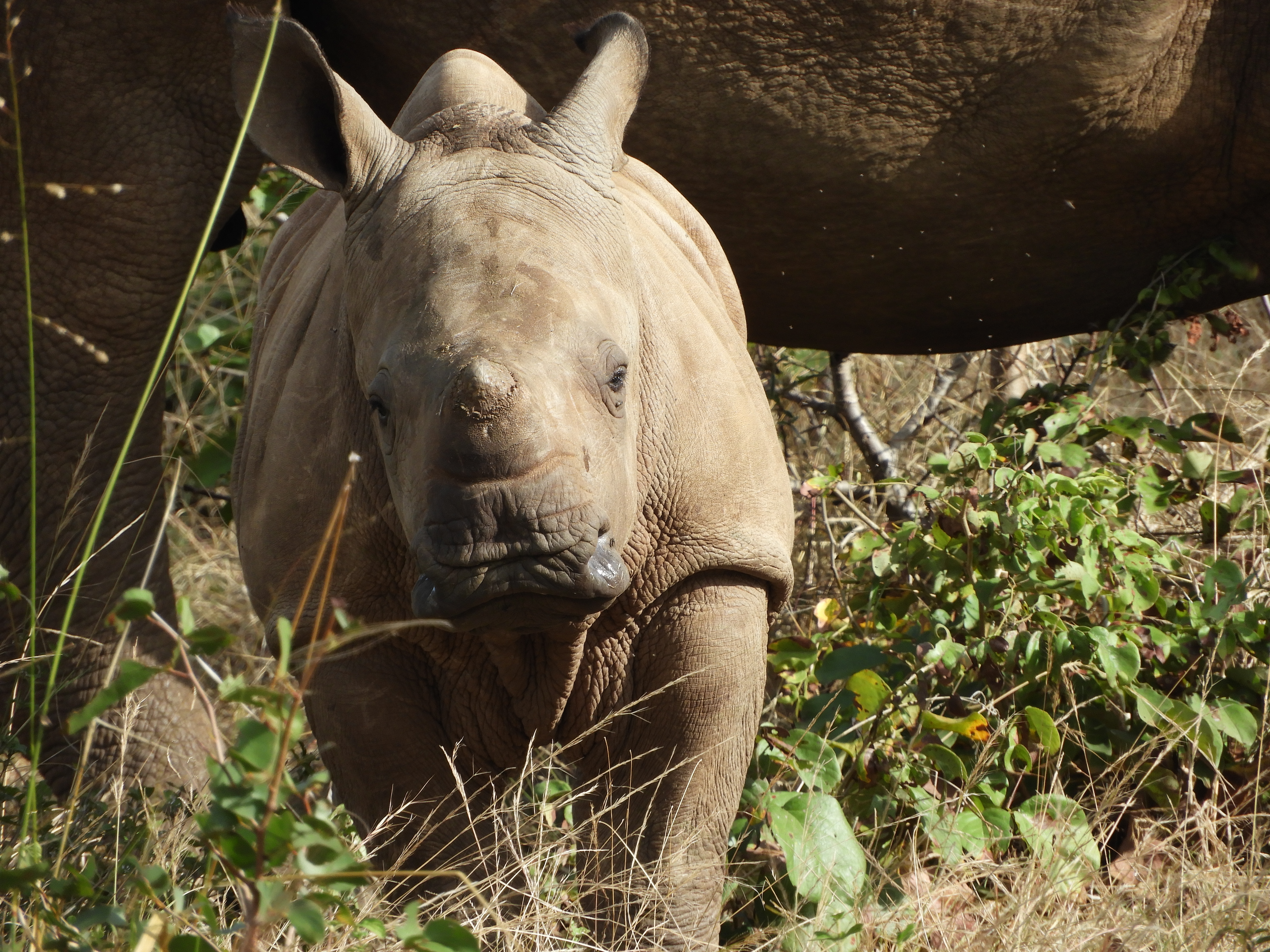 Female and 2-month-old white rhino