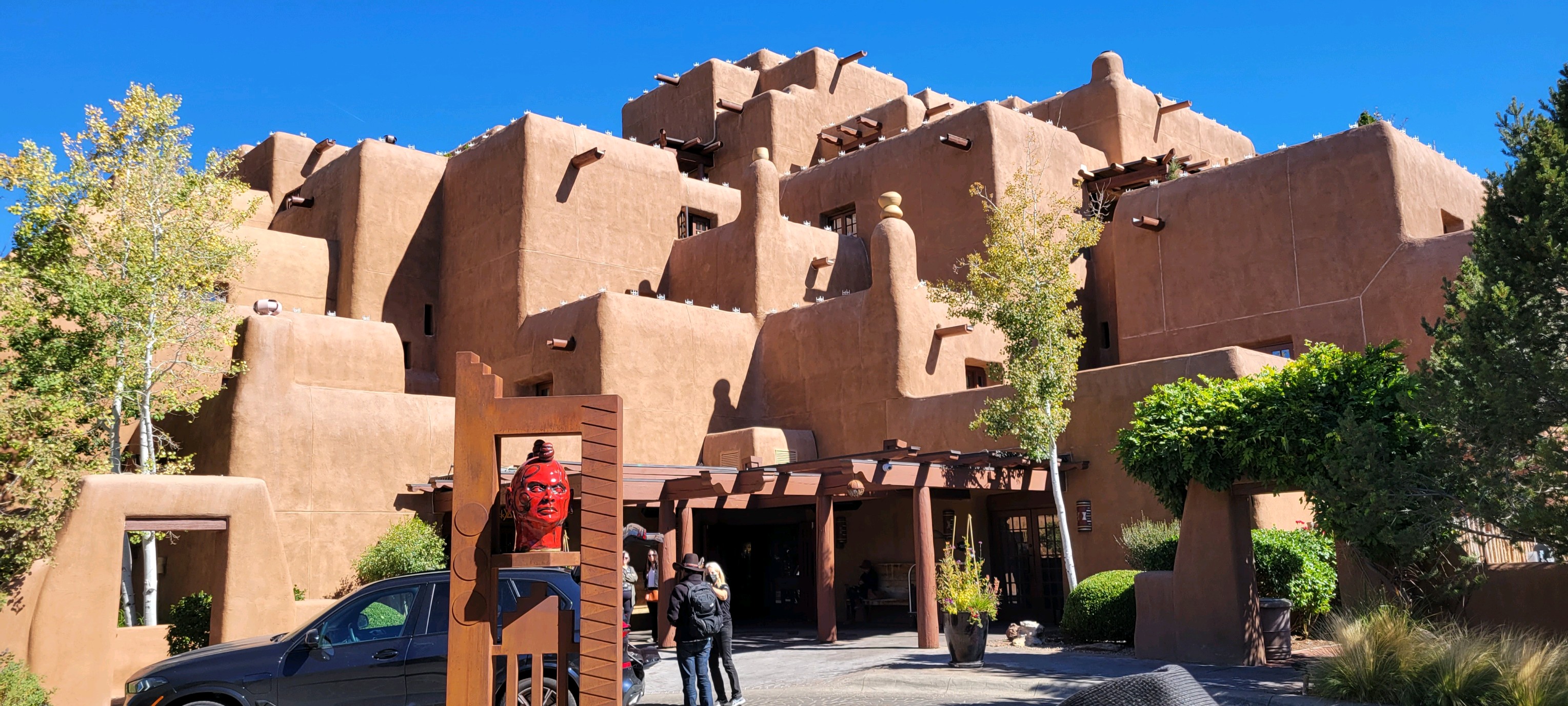 Santa Fe hotel and statue of Po'pay - Native American leader of Pueblo Rebellion