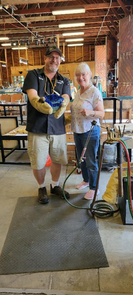 the glass bowl Kay made at the hot shop we saw as we rode the rail bike
